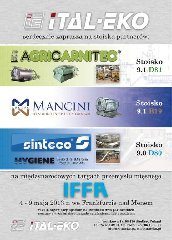 Zapraszamy na Międzynarodowe Targi Przemysłu Mięsnego IFFA 2013.
